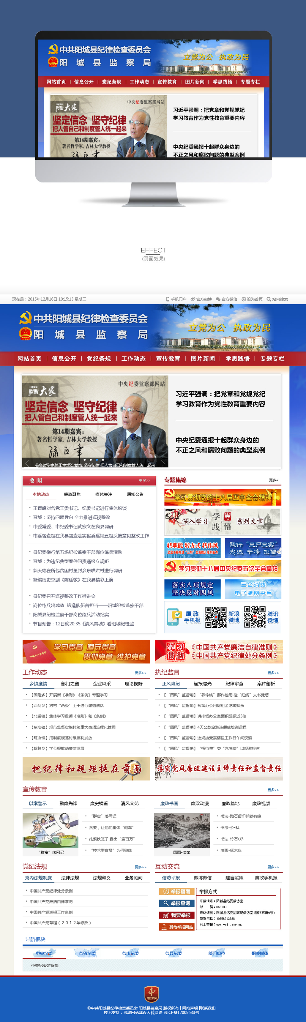 欄,以文字、圖片、視頻等多種形態(tài)呈現(xiàn),力求把網(wǎng)站打造成為陽(yáng)城縣紀(jì)檢監(jiān)察信息公開(kāi)、宣傳教育、成果展示、網(wǎng)絡(luò)舉報(bào)、問(wèn)責(zé)曝光的主渠道主陣地。