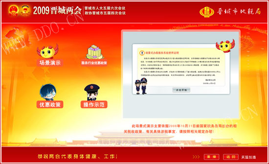 系統(tǒng)歡迎界面,跟隨計(jì)算機(jī)同步啟動(dòng),確保兩會(huì)代表使用計(jì)算機(jī)時(shí)第一眼就能看到晉城地稅形象宣傳。